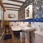 Bathroom: Three-piece suite comprising wash basin, WC and enamelled bathtub. Partly tiled wall, flagstone flooring. Window to side aspect, radiator.