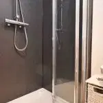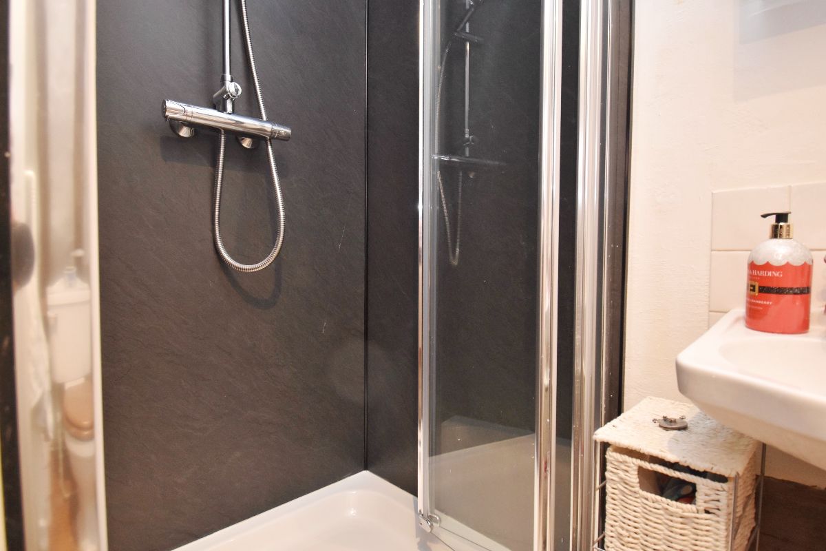 Ensuite: Walk-in cubicle shower, wash basin, WC.