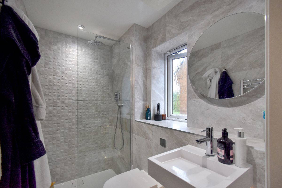 En-Suite Shower Room: Stylishly fitted with a shower cubicle, WC, and wash basin with vanity unit. Obscure glass window to side aspect.