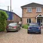 To the front of the property there is parking for a number of vehicles in tandem at the side of the house, plus one space in front of the living room window. Front flower bed under lounge window.