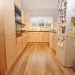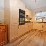 Kitchen: 14' x 8'2 (4.27m x 2.49m) with range of base level and wall mounted storage cupboards, ample fitted working surfaces with sink unit with mixer tap and drainer, integrated fan assisted oven and plumbing for fridge/freezer and dishwasher, window to rear aspect.