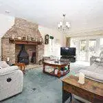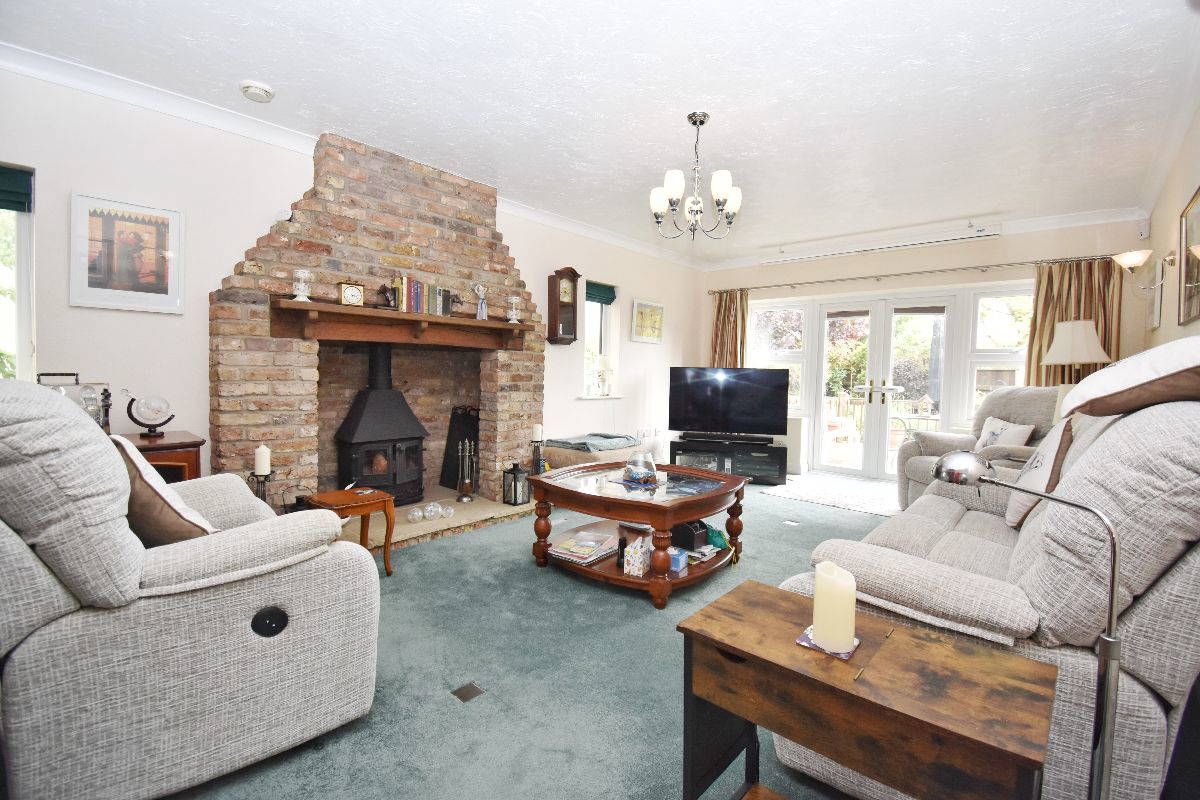Lounge: Fantastic size lounge, with feature large fireplace with side window and doors leading to the decked area in the south facing garden.