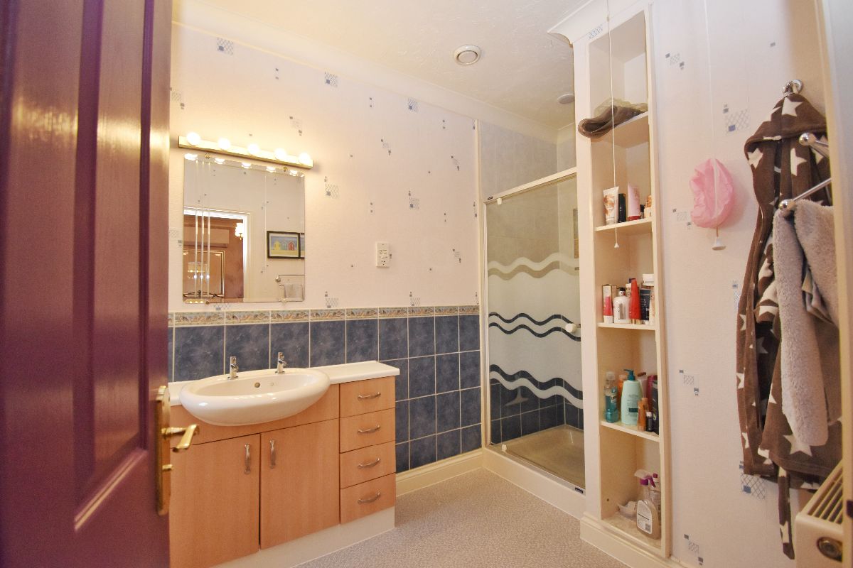 En-suite: Large shower cubicle, WC and wash basin with vanity unit. Window to rear aspect.
