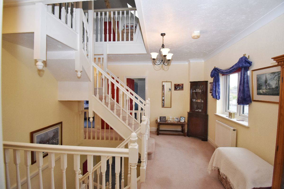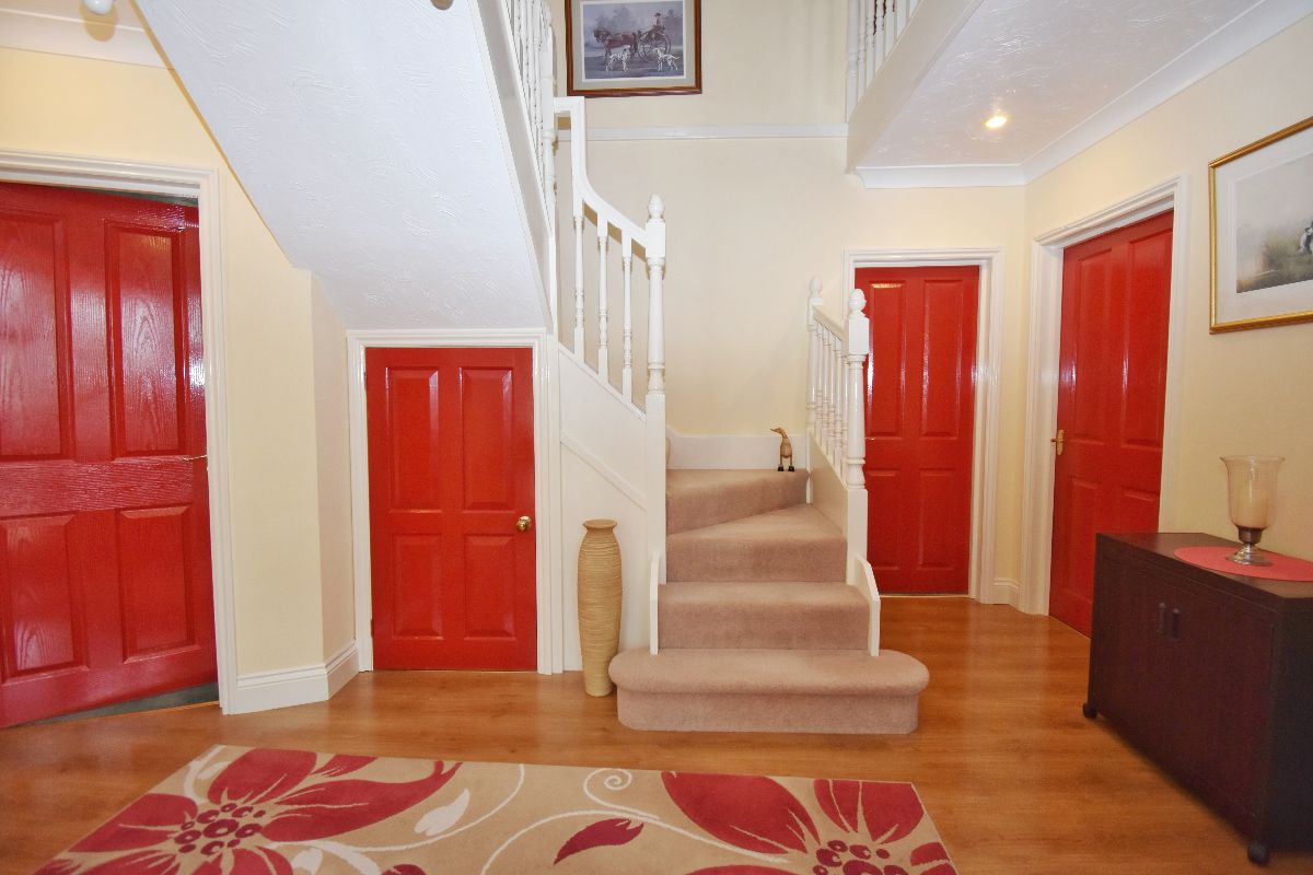 As you enter through the large doorway, you arrive into a grand entrance with staircase being the centre piece, with doors leading to: