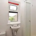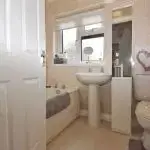 Family Bathroom: Comprising, bathtub with shower over, WC and wash basin, window to rear aspect.