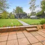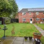 Rear garden has lots of mature panting, vegetable plots, large lawn area, large garden workshop, facing south.