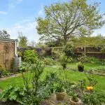 South facing mature rear garden with lots of shrubs and seasonal flowers.