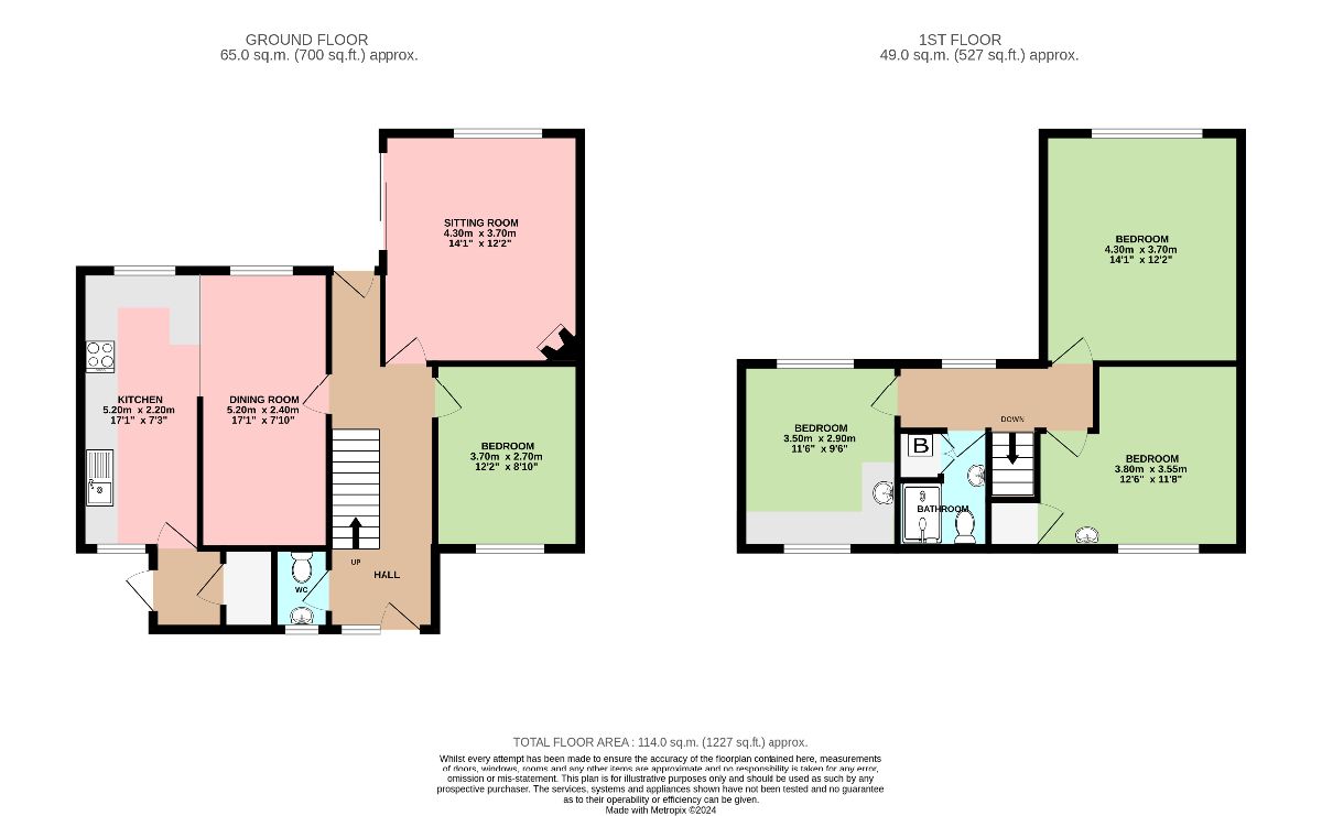 In addition to the upstairs family bathroom and downstairs toilet the second and third bedrooms are fitted with wash basins.