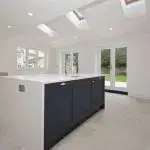 Kitchen/Diner: Fabulous large newly fitted kitchen with central island, granite worktops, integral high end appliances, part vaulted ceiling with roof lights, pair of newly fitted French doors leading