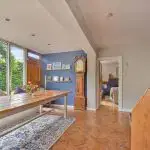DINING AREA: with double glazed French doors to garden, decorative wood panelling, oak flooring, window to front aspect.
