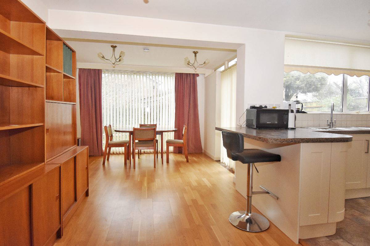 Open Plan Kitchen/Dining room: Range of wall and base units, integral oven and hob and fridge/freezer. Dishwasher and washing machine. Leading to dining area with door to rear garden.