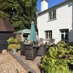 To the rear the property has a charming courtyard style garden, with patio area and raised beds.