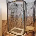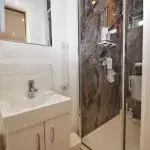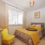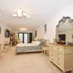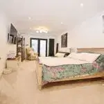 The principal bedroom features fitted wardrobes on both sides, forming a natural dressing area that leads into a spacious sleeping and lounging space large enough to accommodate even the biggest of beds. A door opens into the brand-new en-suite, which offers a luxurious walk-in shower, dual basins, and WC, along with a window to the rear aspect.