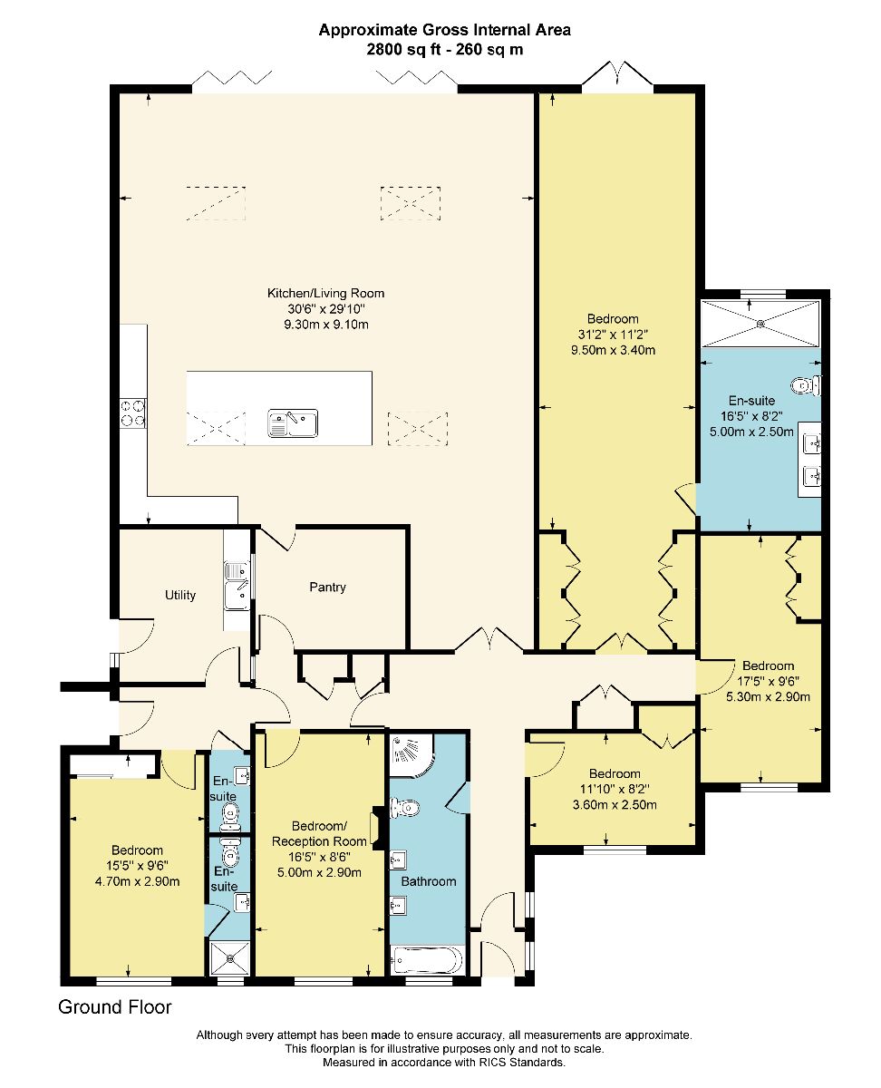 Continuing along the corridor, the east side of the property includes a versatile bedroom currently used as a home cinema, followed by another well-proportioned bedroom complete with its own en-suite shower room. This section of the home also includes a well-equipped utility room, a separate cloakroom, and a side door that provides convenient external access.