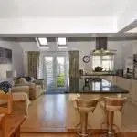 Kitchen/Dining Area/Lounge: Large kitchen dining area with central island featuring a gas hob with granite worktops, a number of integral appliances, inset sink with mixer tap. Range of base and wall units, space for American style fridge freezer. Mixture of hardwood and tiled flooring. Windows to rear and side aspect, with French doors leading to the rear garden and 2 rood lights for further light. Space for dining table leading into the original lounge with window to front aspect.