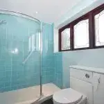 Bathroom: Family bathroom with large walk-in shower cubicle, WC, wash basin and vanity unit, window to front aspect with obscure glass.