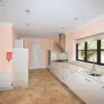 Kitchen/Breakfast Room: 20'6 x 13'9 (6.25m x 4.20m) An immaculate kitchen, with Corian worktops, there are fantastic windows looking out to rear aspect that lets in an abundance of natural light. Gas stove with extractor fan, single oven, dishwasher, oven/microwave, integral fridge and separate freezer. Bar space with stylish frosted glass cupboard above for glassware and plenty of room for a table and chairs. Wall and floor units throughout the kitchen. Vinyl flooring. Access to: