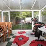 CONSERVATORY 11'3 x 8'10 (3.42m x 2.69m) tiled flooring, part brick with double glazed windows and double glazed sliding doors leading to patio, Power and lighting.