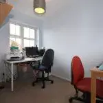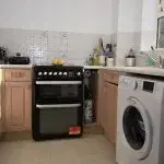 Good selection of both wall and base units, laminated work surface with tiled splash backs. Freestanding electric oven and hob, room for white goods. Boiler on the wall, Window to front aspect.