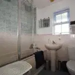 FAMILY BATHROOM comprising combined shower and bath unit, wall mounted shower with hot and cold mixer tap, tiled surround, low level W.C. Wash basin, extractor fan, radiator, shaver point, double glazed window fitted with obscure to front aspect.